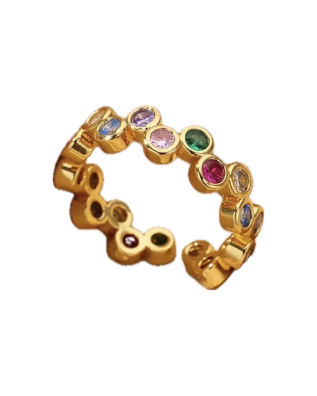 Our Bubble Colored Ring is an exquisite piece of jewelry, made from high-quality stainless steel and finished with a fine 18-carat gold plating. This elegant design combines durability with timeless elegance.