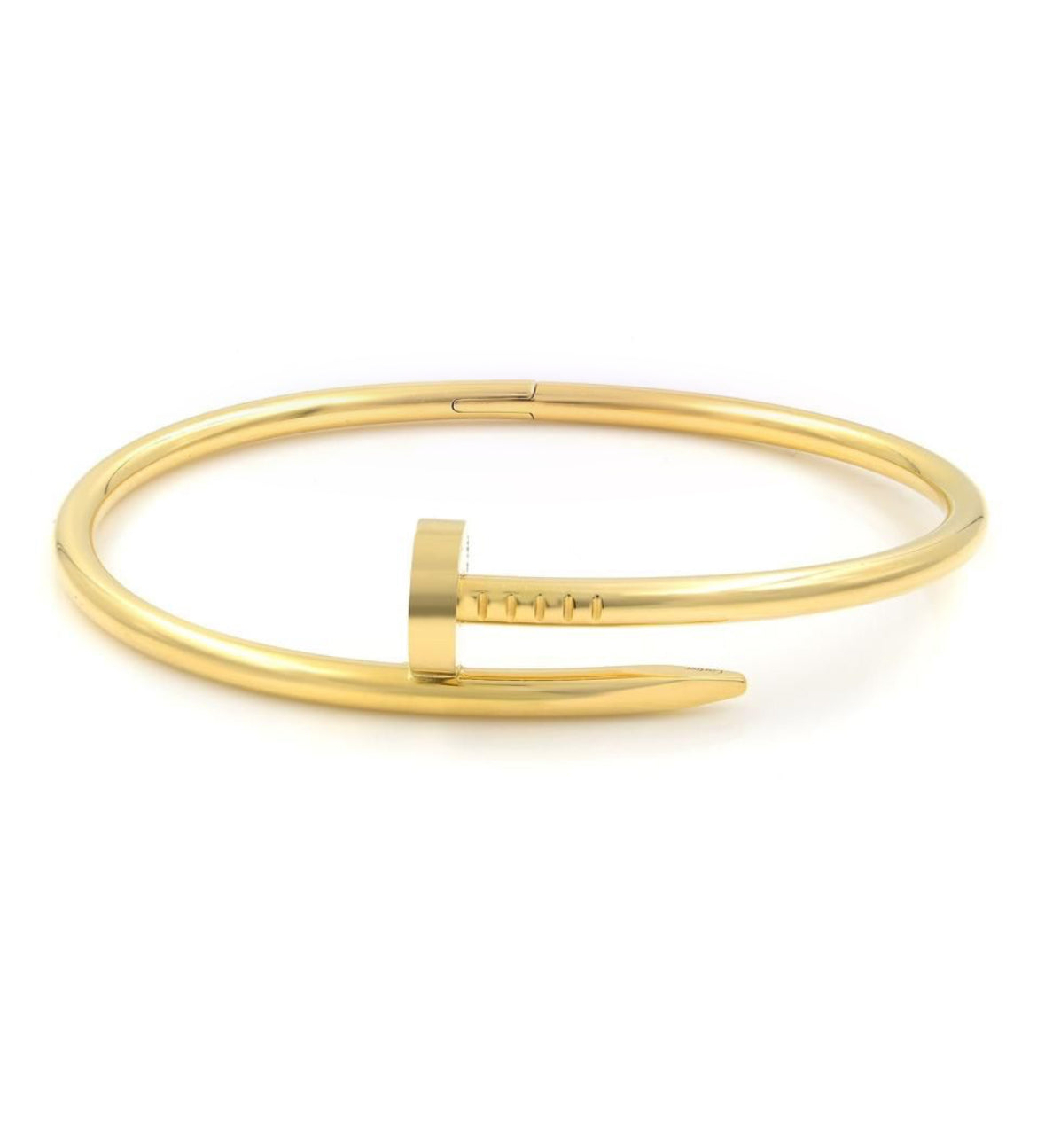 Our Cartier Claw Bangle is an exquisite piece of jewelry, made from high-quality stainless steel and finished with a fine 18-carat gold plating. This elegant design combines durability with timeless elegance.