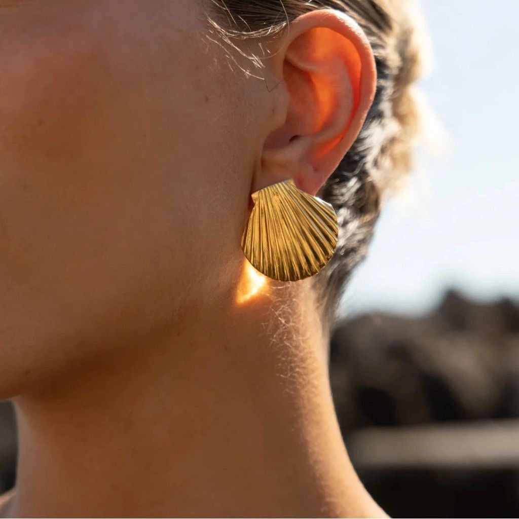 Our Shell Earrings is an exquisite piece of jewelry, made from high-quality stainless steel and finished with a fine 18-carat gold plating. This elegant design combines durability with timeless elegance.