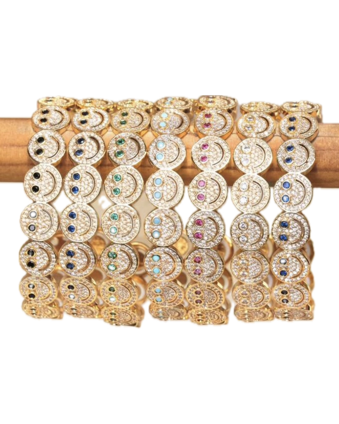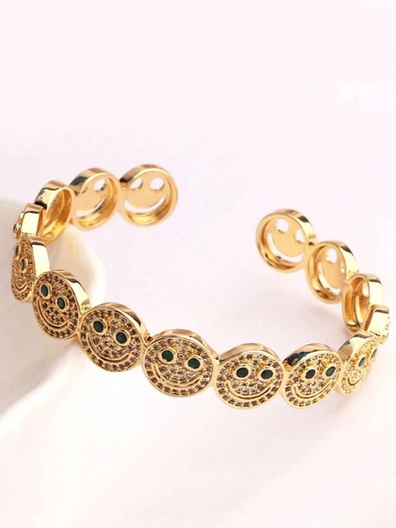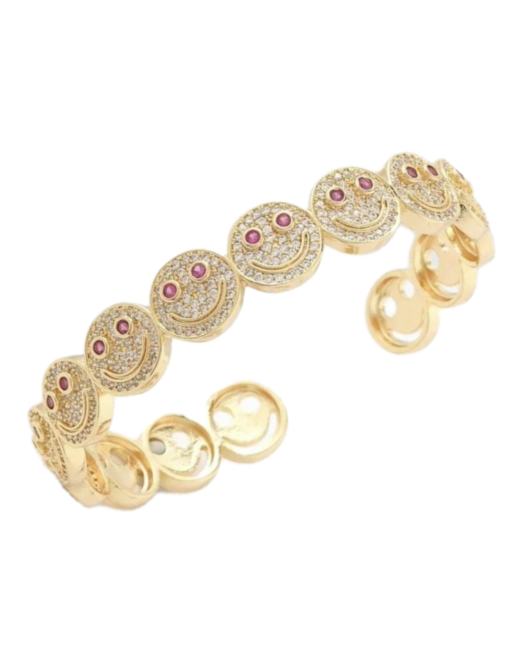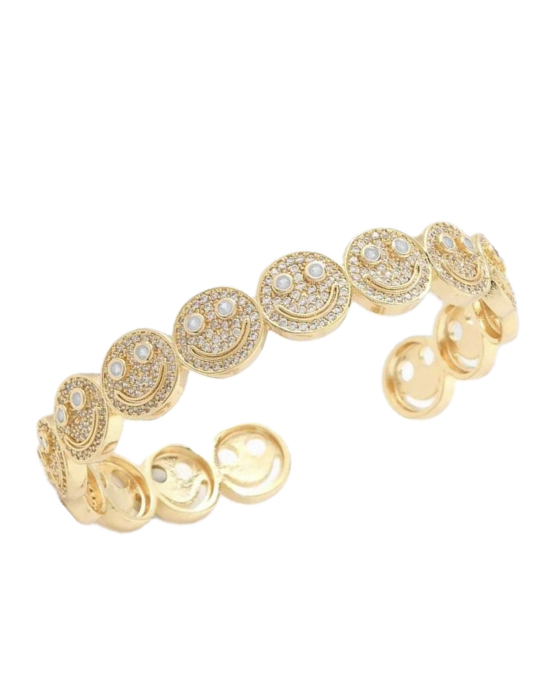 Our Smiley Bangle is an exquisite piece of jewelry, made from high-quality stainless steel and finished with a fine 18-carat gold plating. This elegant design combines durability with timeless elegance.