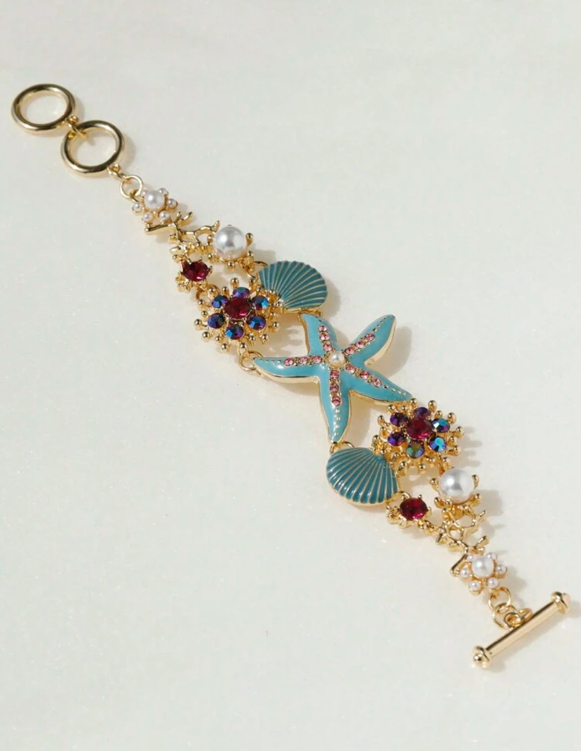 Our Starfish Bracelet is an exquisite piece of jewelry, made from high-quality stainless steel and finished with a fine 18-carat gold plating. This elegant design combines durability with timeless elegance.