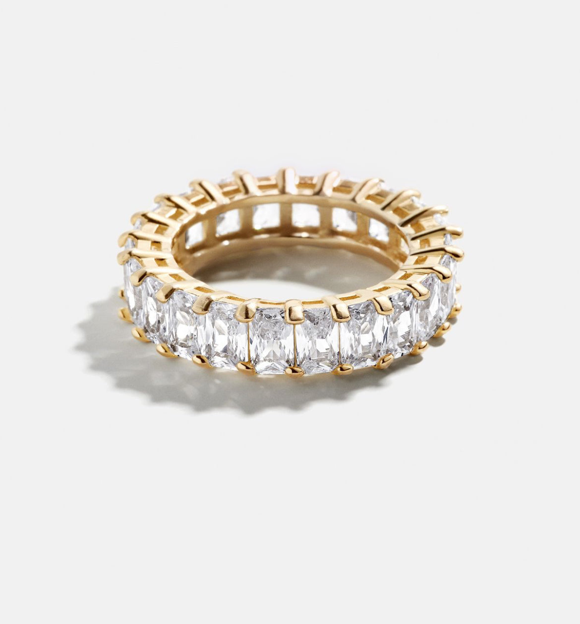 Our Tennis Ring is an exquisite piece of jewelry, made from high-quality stainless steel and finished with a fine 18-carat gold plating. This elegant design combines durability with timeless elegance.