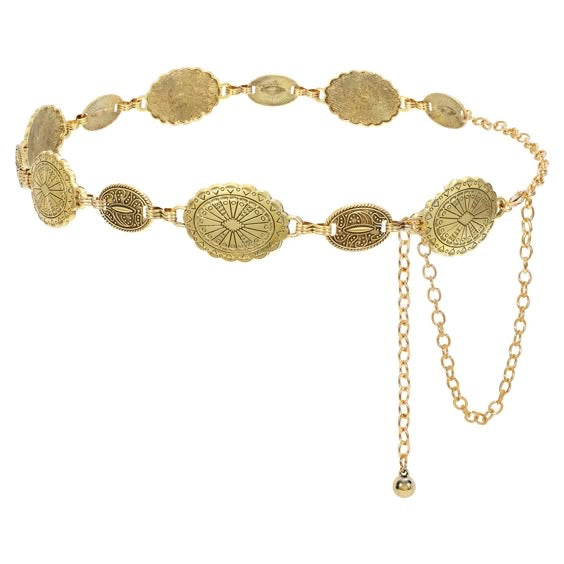 Our Vintage Waist Chain is an exquisite piece of jewelry, made from high-quality stainless steel and finished with a fine 18-carat gold plating. This elegant design combines durability with timeless elegance.