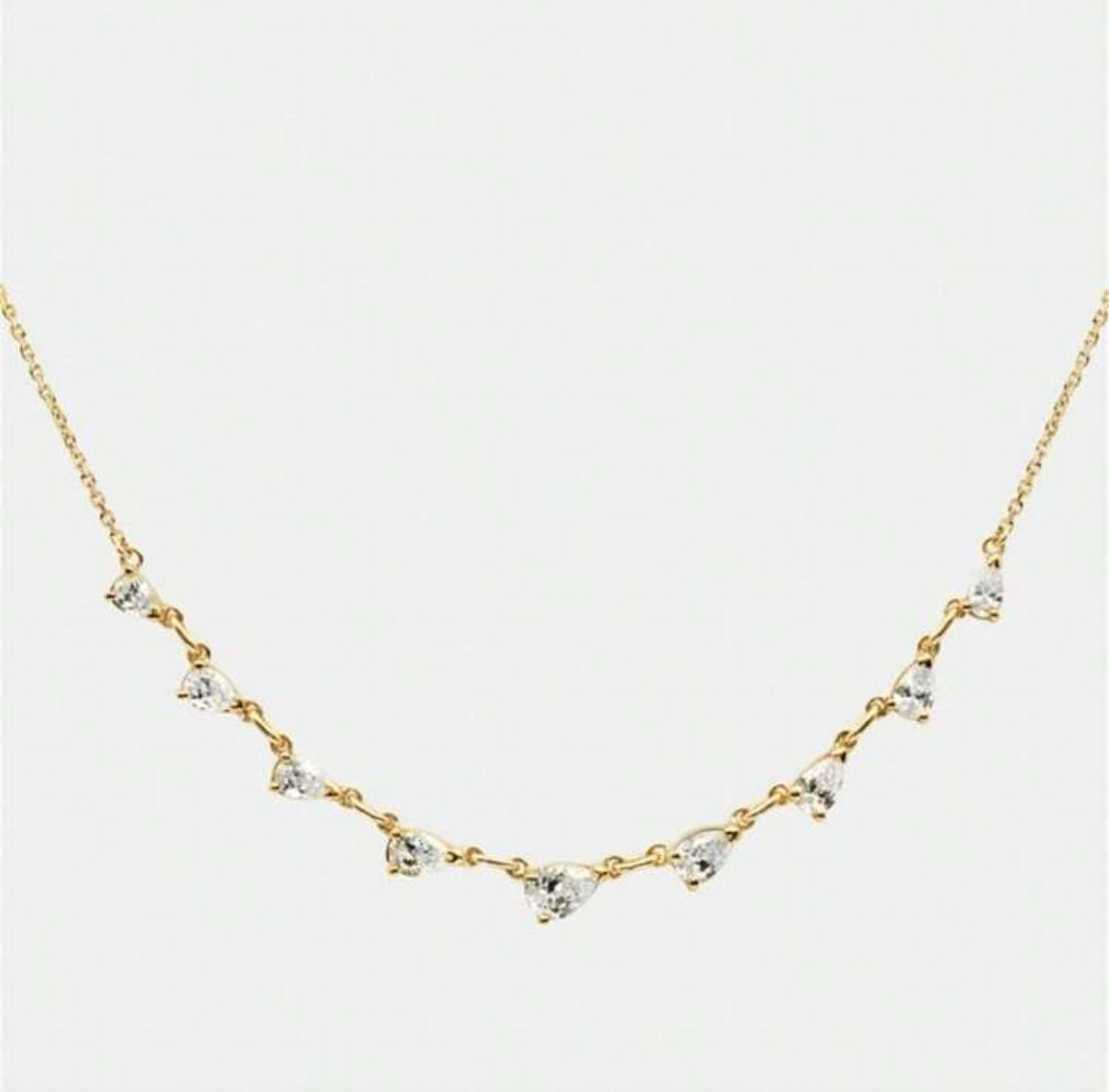 Our Water Drop Necklace is an exquisite piece of jewelry, made from high-quality stainless steel and finished with a fine 18-carat gold plating. This elegant design combines durability with timeless elegance.